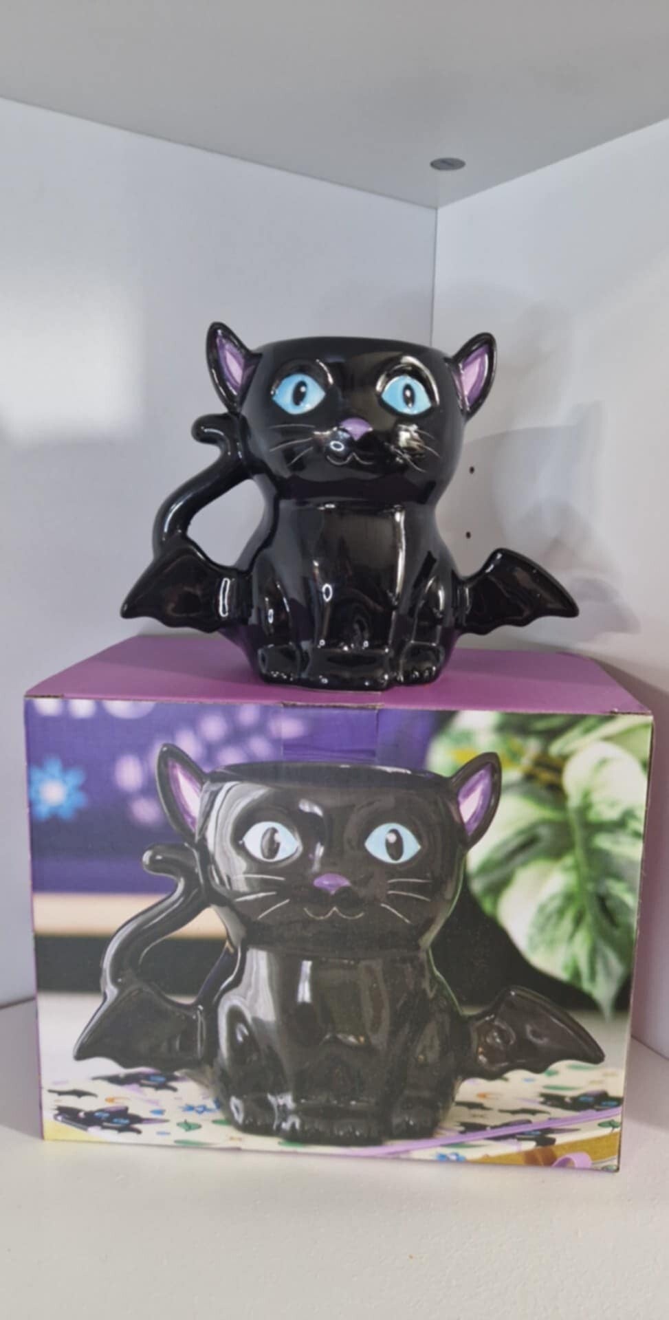 Canalisez votre sorcière intérieure avec cette tasse en céramique en forme de chat noir, complétée par de petites ailes de chauve-souris pour une touche parfaitement effrayante. Un ajout ensorcelant à toute collection de tasses et un cadeau idéal pour les fanatiques de félins. Capacité de 500 ml. Lavage à la main uniquement. Ne pas utiliser au micro-ondes. Conçu par Something Different Wholesale et faisant partie de la collection Cute & Creepy de cadeaux mystiques et de décoration intérieure.