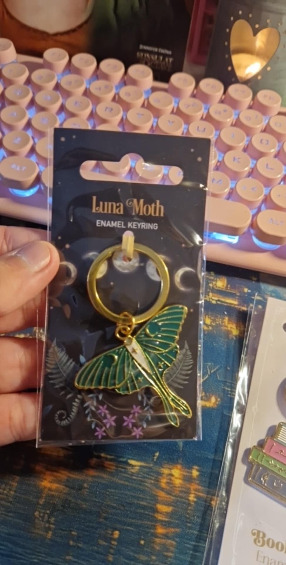 Ce porte-clés éthéré est orné d'une breloque en forme de papillon lunaire émaillée dorée sur une carte cadeau assortie. Conçu par Something Different Wholesale et fait partie de la gamme Dark Forest de cadeaux et de décorations d'intérieur mystiques pour la forêt.