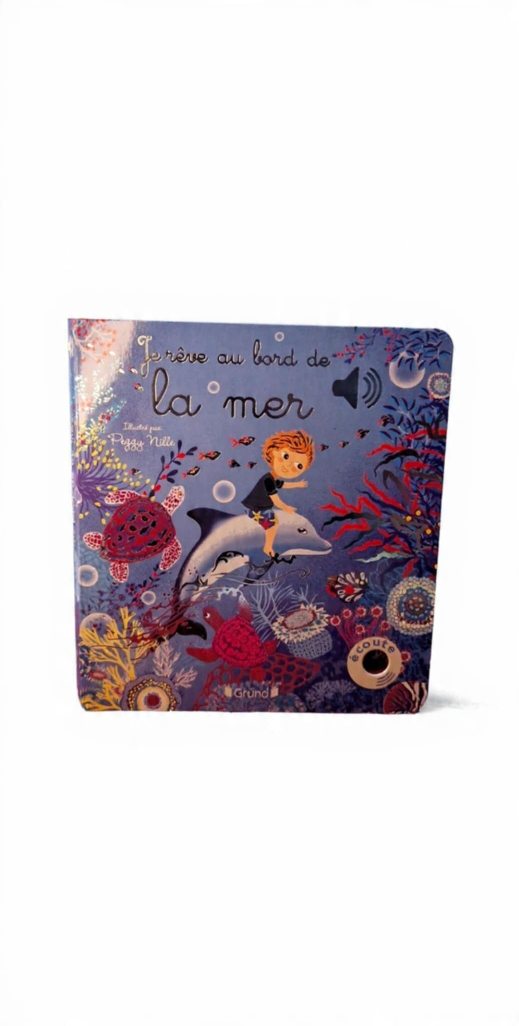 Au fil des pages, chevauche un dauphin, laisse-toi porter par une nuée de goélands, nage au milieu des poissons et attention tu croiseras peut-être des pirates ! Découvre les bruits de l'eau, les cris des requins et le souffle du vent dans les voiles mêlés à une air de musique de Saint-Saëns ou de musique traditionnelle hawaïenne. Les sons magiques se mêlent aux bruits de la nature et nous entrainent dans un rêve !