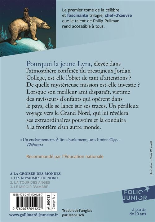 Pourquoi la jeune Lyra, élevée dans l'atmosphère confinée d'une prestigieuse université anglaise, est-elle l'objet de tant d'attentions ? De quelle mystérieuse mission est-elle investie ? Lorsque son meilleur ami, Roger, disparaît, victime des ravisseurs d'enfants qui opèrent dans tout le pays, elle n'hésite pas à se lancer sur ses traces... Un périleux voyage vers le Grand Nord, périlleux et exaltant...